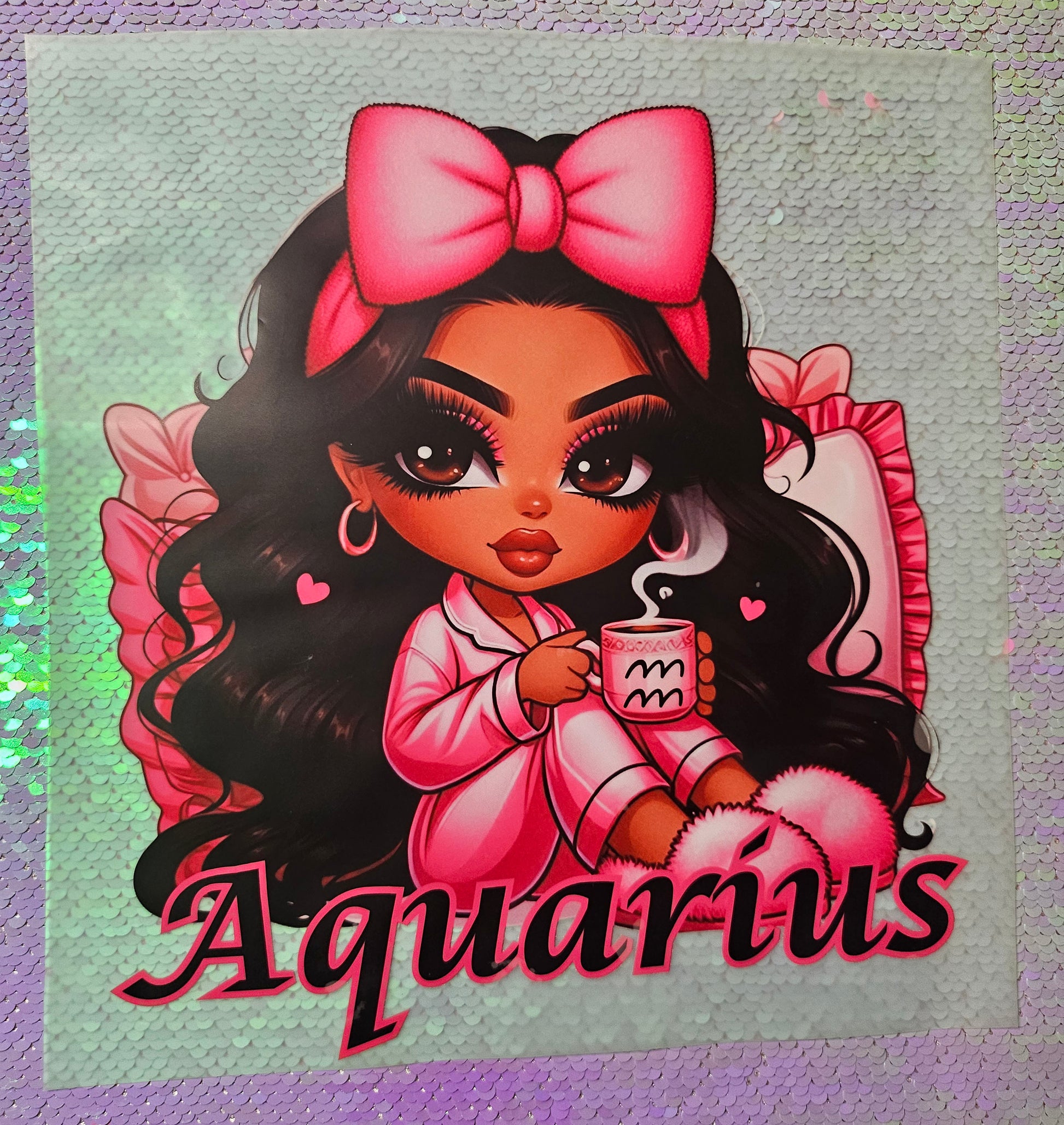 Embrace your cosmic energy with the #0001 Aquarius Girl heat transfer design. Perfect for customising t-shirts, hoodies, and more, this vibrant transfer brings zodiac flair to your wardrobe. Featuring bold, eye-catching artwork that celebrates independent Aquarius vibes, it's ideal for astrology lovers and those who march to the beat of their own drum. Easy to apply and built to last, transform your basics into statement pieces that showcase your unique personality. Let your inner water bearer shine.