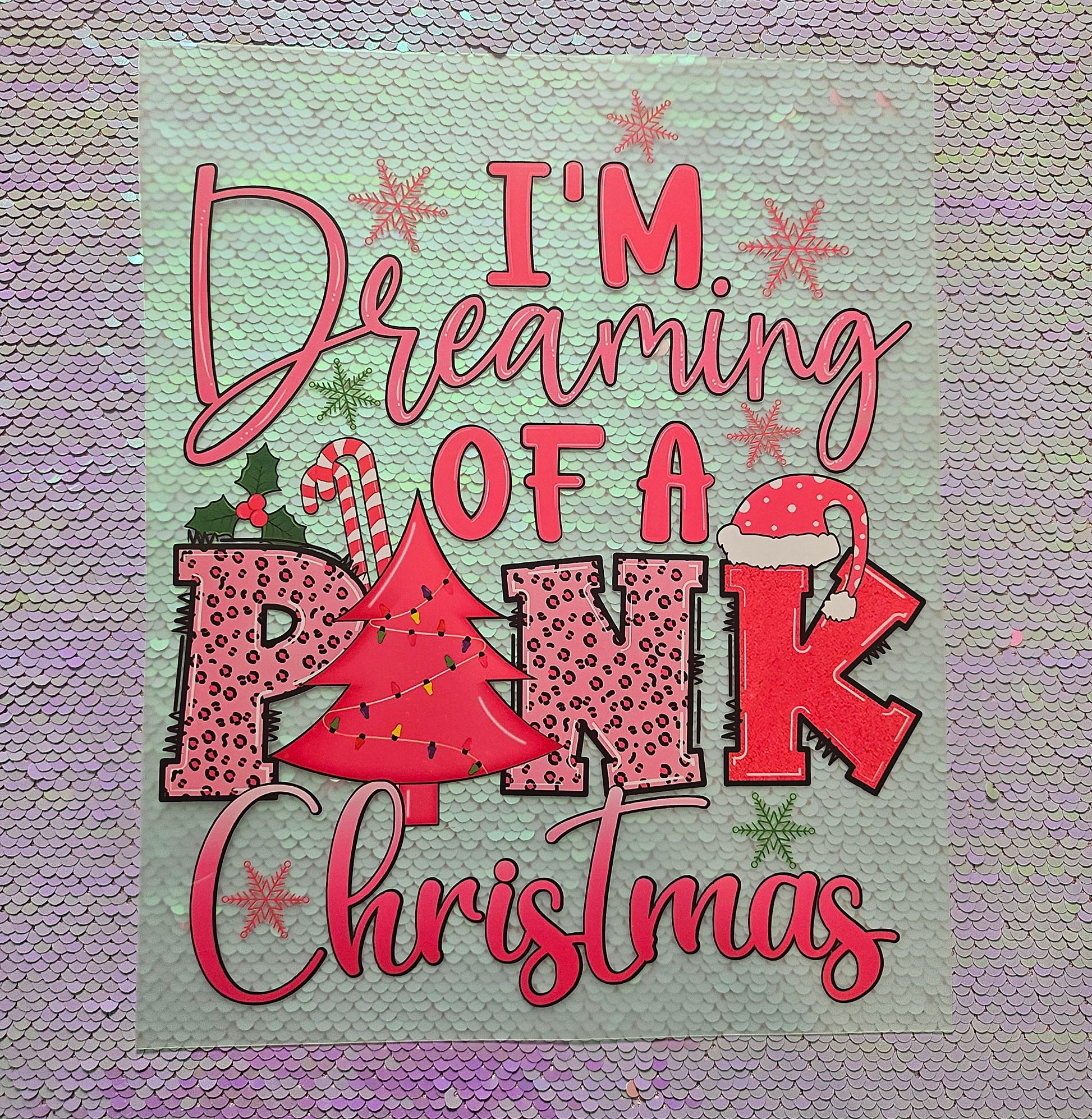 Spread festive cheer with our #0040 PINK CHRISTMAS heat transfer design! Perfect for adding a jolly twist to your holiday wardrobe, this charming transfer brings soft pink tones and Christmas magic to t-shirts, hoodies, tote bags, and more. Simply apply with heat and watch your garments transform into wearable holiday art. Ideal for DIY crafters, gift-givers, and anyone ready to make their seasonal style pop with personality. Get merry in pink this year!